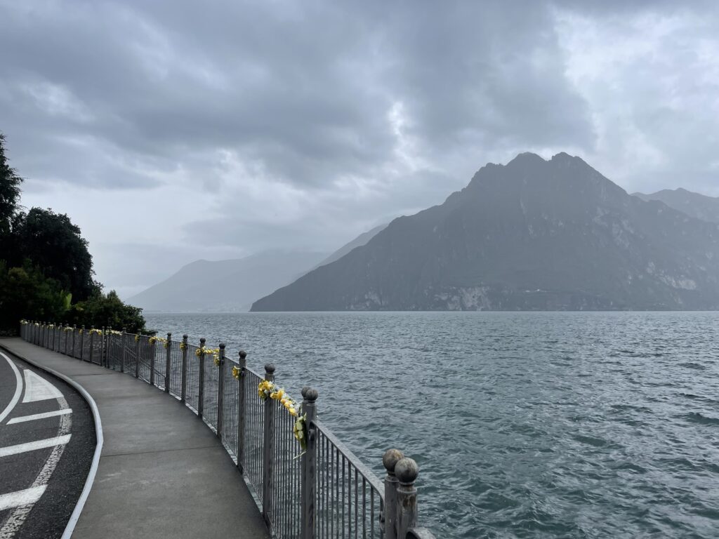 The weather forecast for today predicted quite a lot of rain. But when I left the hotel in the morning to check out the weather (our room didn’t have any real windows), it was grey and the road was wet, but it was not raining. So we left the hotel, grabbed some ciabattas and cheese at the closest supermarket and started cycling.